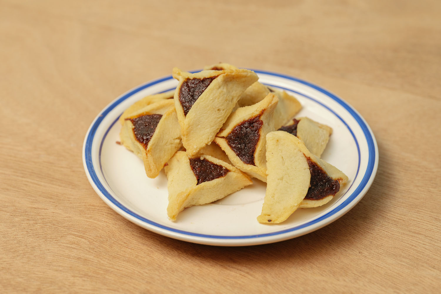 In Israel, poppy seed hamantaschen are closely tied to Purim tables, bakery shelves, and home kitchens in the weeks leading up to the holiday. This version follows that familiar style: pale cookie dough folded into a triangle around a dark poppy seed center, left exposed so the filling remains visible and intact after baking.