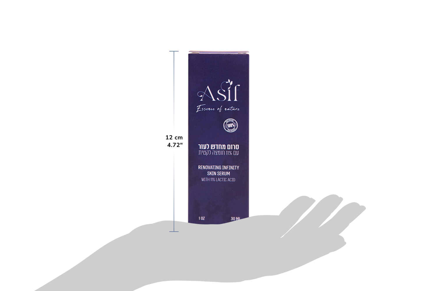 Refresh and renew your skin with Renovating Infinity Skin Serum with Lactic Acid with 11% Lactic Acid. Asif, a leading Israeli skincare purveyor, combines cutting-edge science with Israel’s natural bounty to create highly effective natural skincare products.