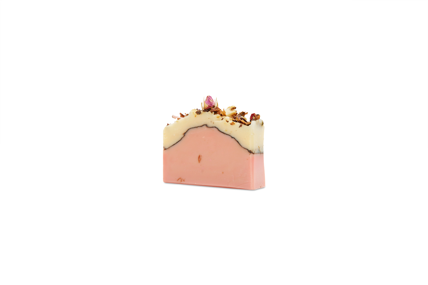 Ingredients: Cold-pressed olive oil, coconut oil, palm oil, shea butter, cold-pressed castor oil, distilled water, lye, sodium lactate, kaolin clay, red clay, pigments, cocoa powder, rose petals, rose bud, sweet orange essential oil, lemongrass essential oil, geranium essential oil, tea tree essential oil, ylang-ylang essential oil, palmarosa essential oil
