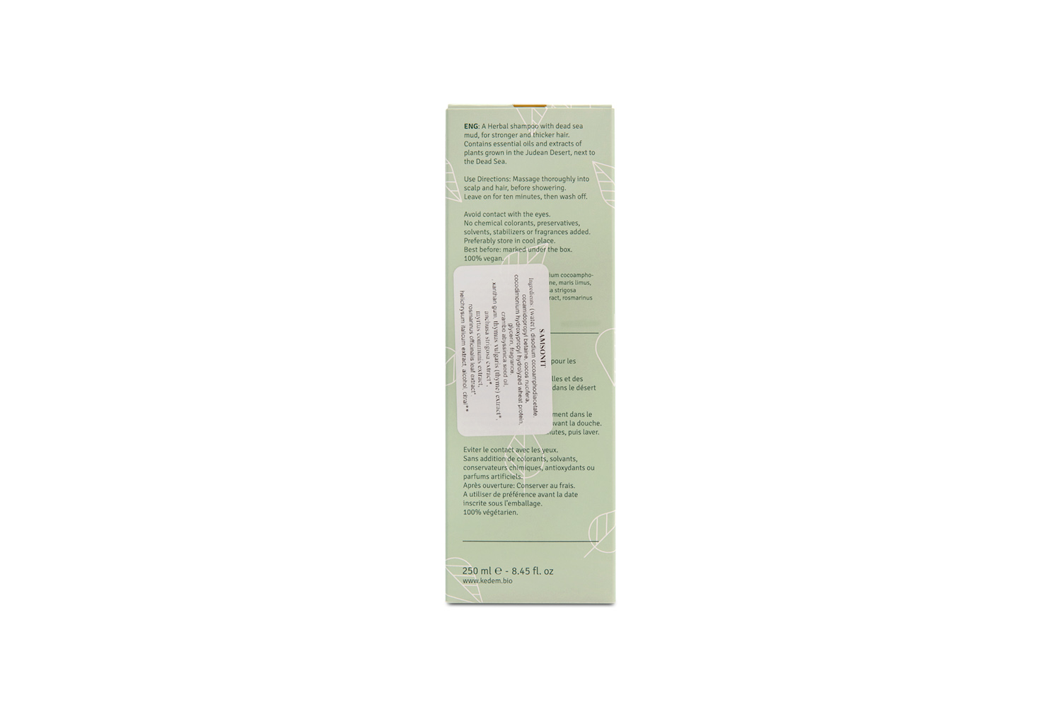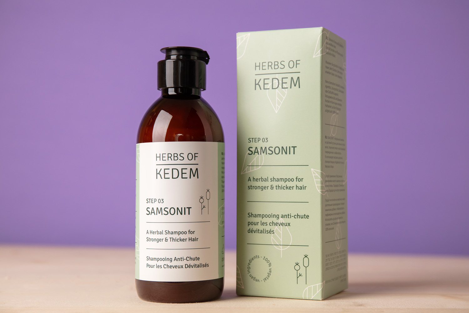 Herbs of Kedem SAMSONIT Shampoo for strengthening is a gentle formula that will treat your hair, revealing stronger, thicker hair over time. The shampoo contains potent extracts of Judean Desert flowers and Dead Sea minerals, leaving your hair softer to the touch, stronger, and more resilient.