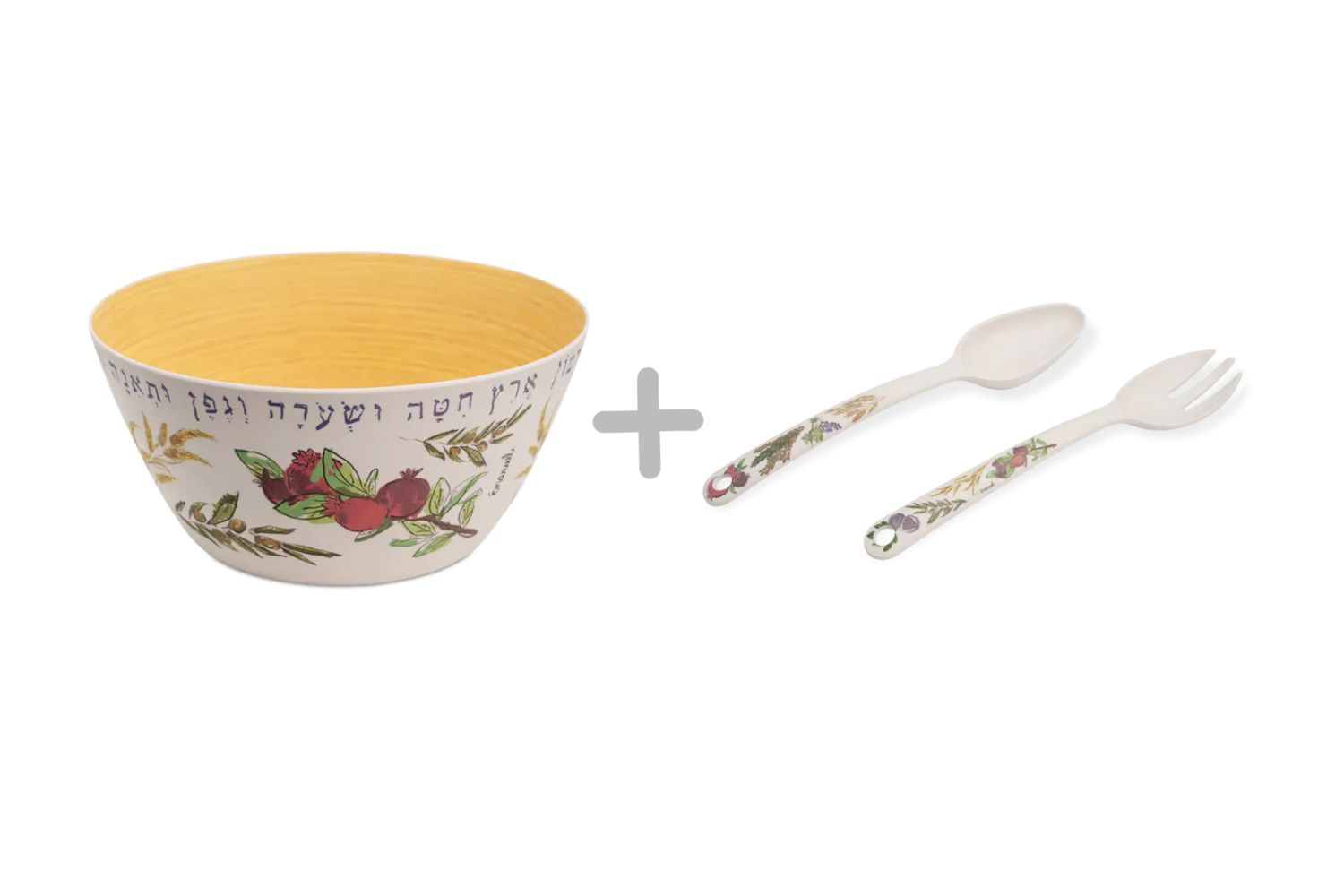 Seven Species Bamboo Serving Spoon Set & Large Salad Bowl