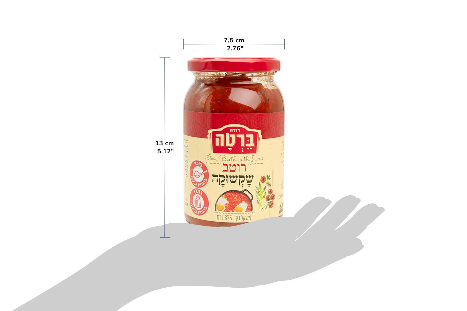 Aunt Berta’s Shakshuka Sauce is made from natural, locally grown ingredients and spices. Aunt Berta uses whole sun-ripened Israeli tomatoes to flavor its Shakshuka Sauce!