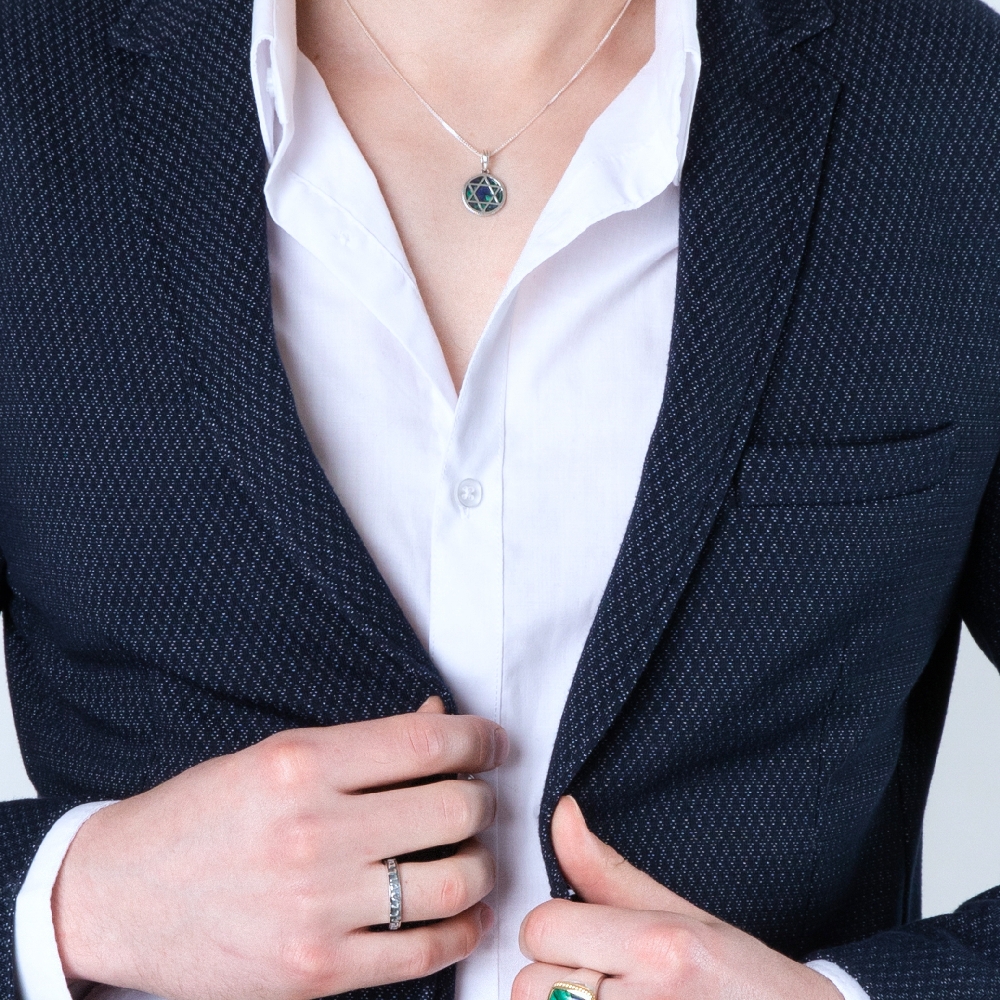 The Star of David, an enduring symbol of Jewish identity and unity, has deep historical roots, dating back to its use on the shields of warriors during the Bar Kokhba rebellion over 2,000 years ago. This pendant beautifully intertwines these elements, creating a design that speaks to both history and faith.
