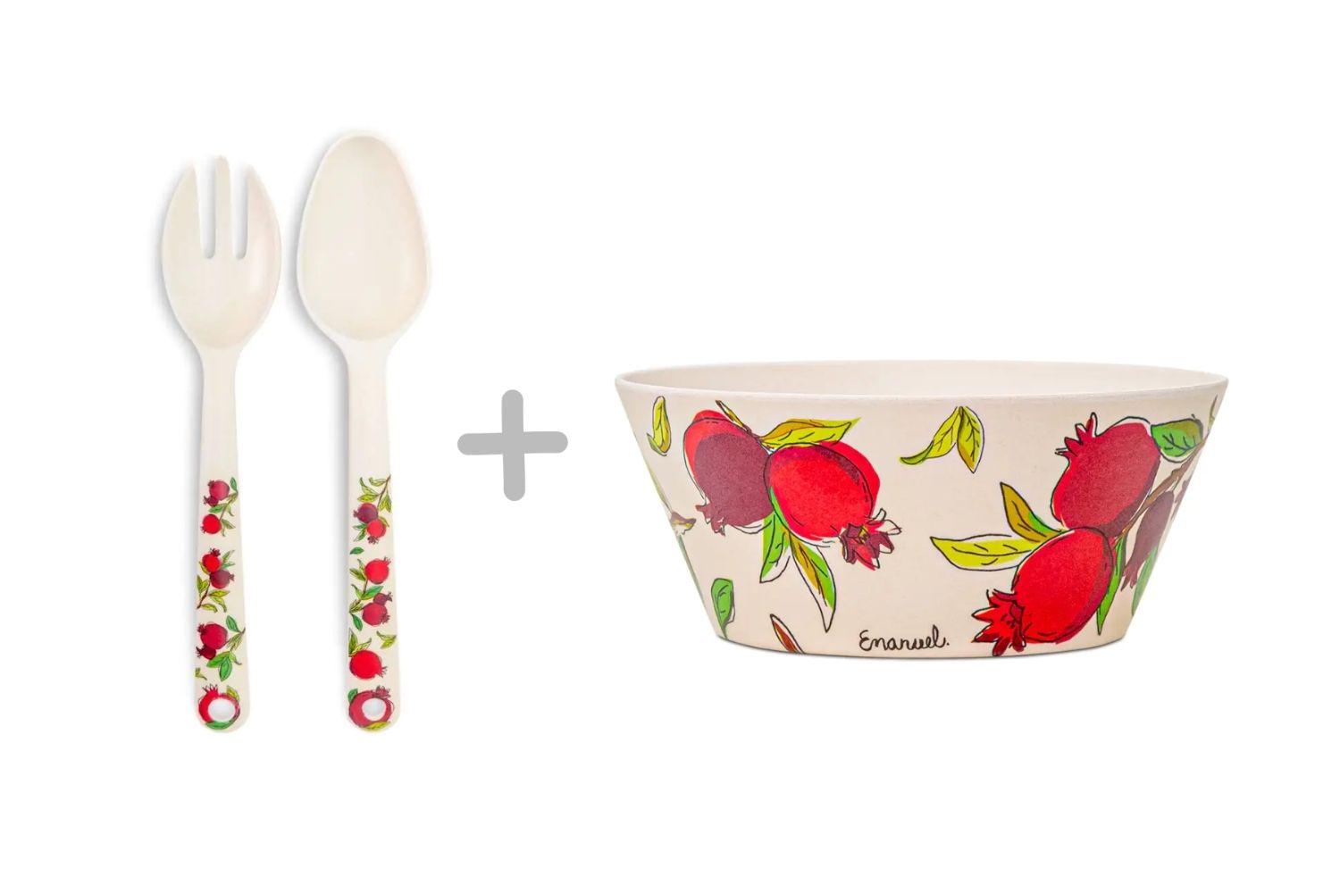 Celebrate the beauty and symbolism of the pomegranate with Yair Emanuel’s charming bamboo serving set, featuring a vibrant bowl and a matching spoon set adorned with cheerful red pomegranates. As one of the Seven Species of the Land of Israel mentioned in the Bible, the pomegranate represents abundance, beauty, and good deeds, making these pieces both meaningful and stylish additions to your table.