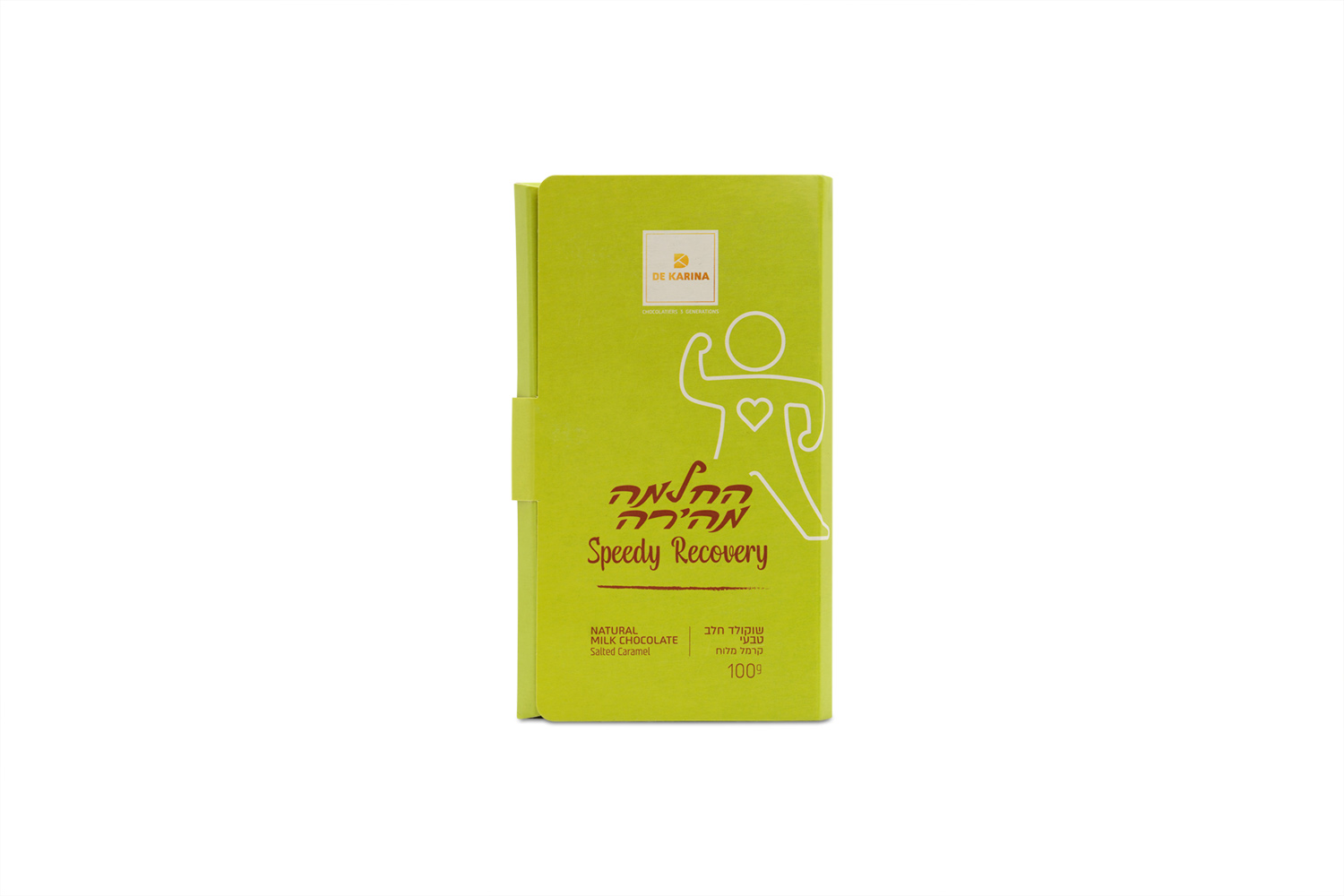 This chocolate bar is created by one of Israel’s most storied chocolatier families, and carries a message of strength and care. This “Speedy Recovery” chocolate bar – meant to be a delicious version of a “Get Well Soon” card – comes from De Karina, a boutique chocolate workshop founded in the Golan Heights by Karina Chepel Baruch, a third generation chocolatier whose family fled war torn Europe and rebuilt their craft in South America before finally planting roots in Israel.