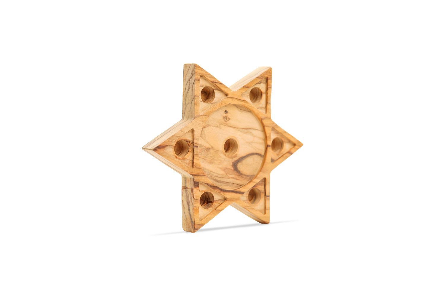 Star of David Olive Wood Candlestick by Joseph Ohayon Judaica