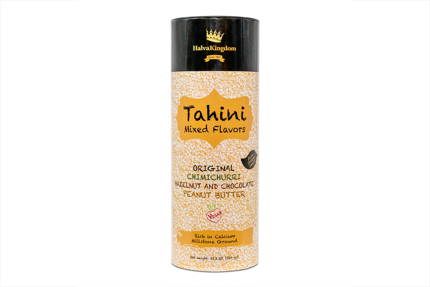Halva Kingdom uses the highest quality pure sesame seeds to make their products. The seeds are roasted at high heat by hand to reveal an aromatic and rich flavor. Following roasting, they are ground using an old millstone press. Using this generations-old technique means that Eli and his team can obtain the highest nutritious values and achieve a silky smooth consistency to their tahini.