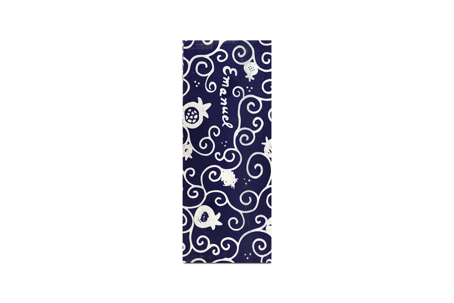 Emanuel’s designs are infused with his love for Judaism, a respect for tradition blended with his joyful embrace of color and innovation. His Judaica is represented in various mediums from painted wood, textiles, and metal. Each piece that he makes is unique while recognizably ‘Emanuel.’