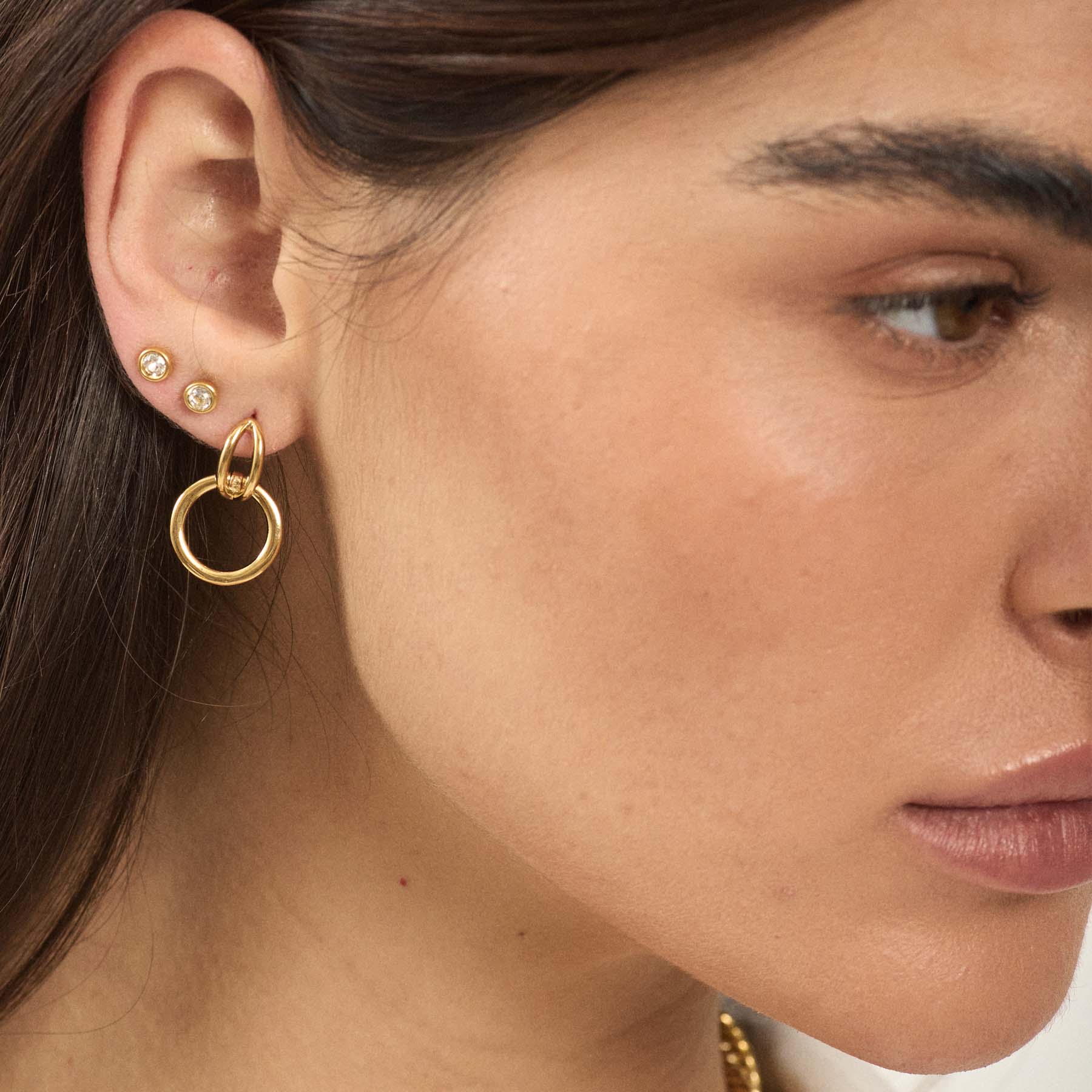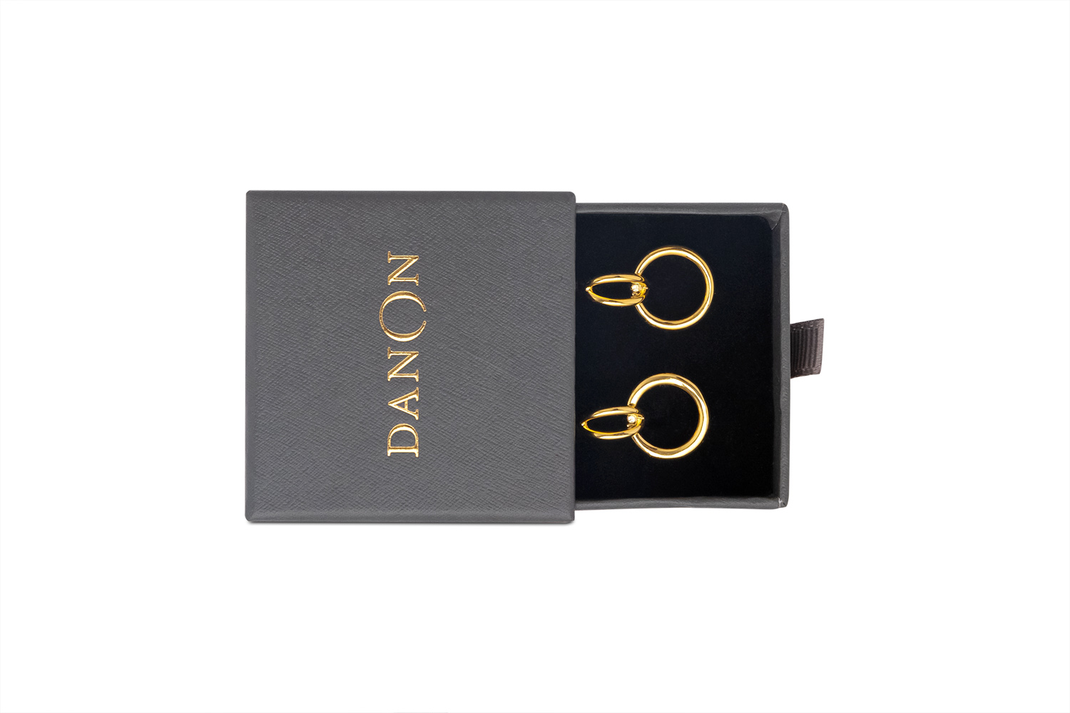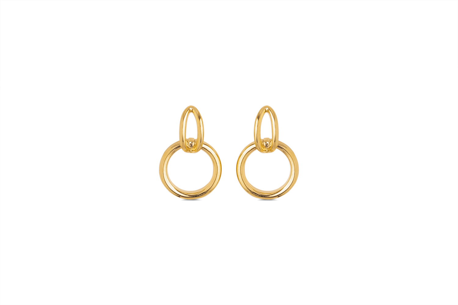 Leading Israeli jeweler Danon has fashioned a beautiful pair of Taranto gold-plated earrings with two connecting circles for an effortlessly modern look.