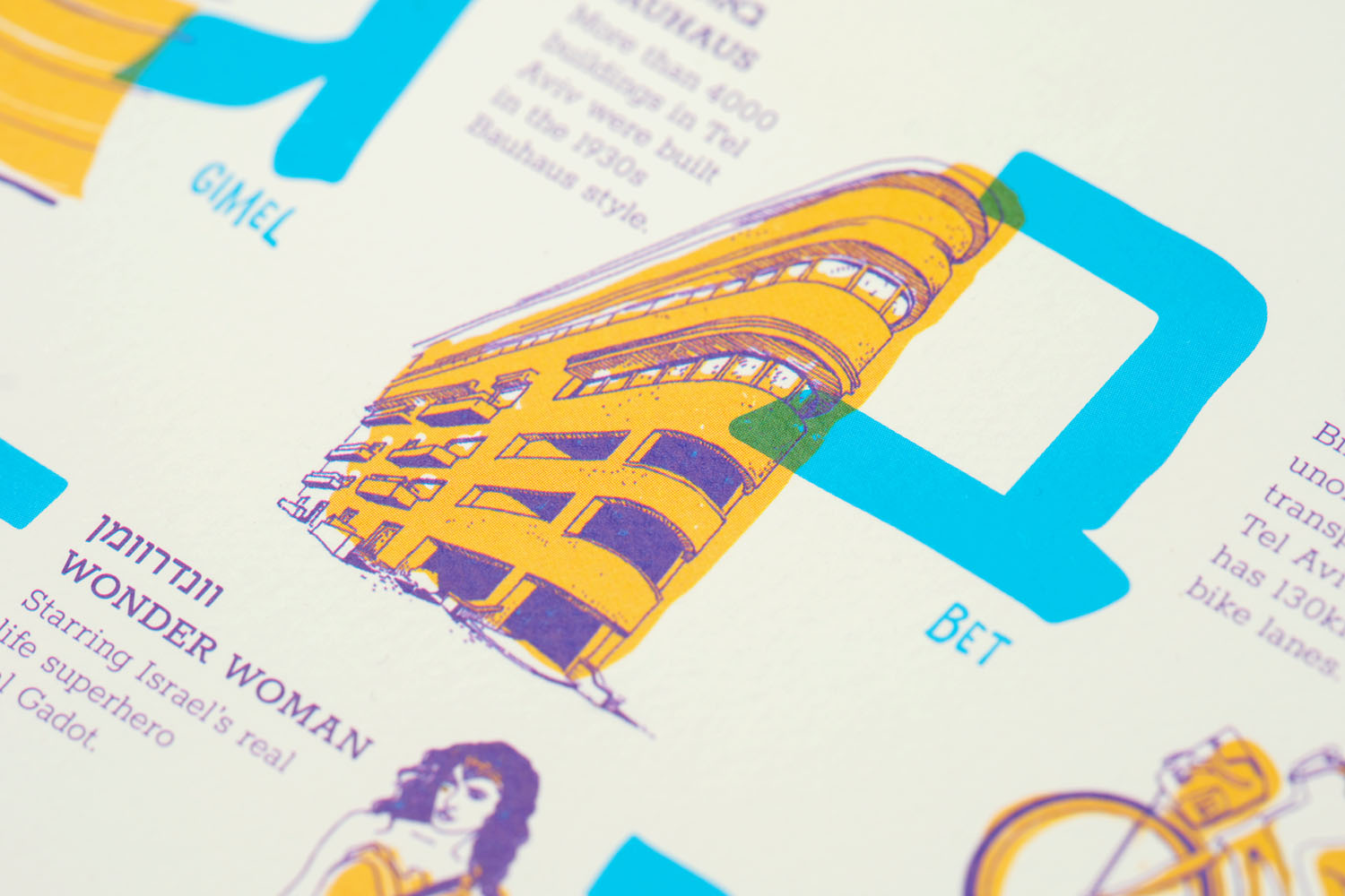 From Israel comes this energetic and playful “Tel Aviv A to Z” art print – a colorful alphabetic celebration of Israel’s most vibrant and creative city.