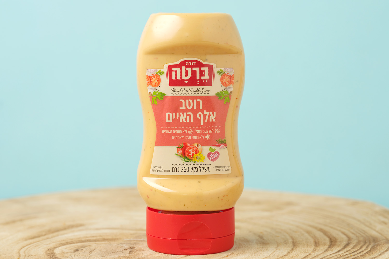 Aunt Berta’s roots lie in the Galilee, where family tables were shaped by simple produce, homemade preserves, and sauces prepared slowly with whatever the season offered. Those traditions remain at the heart of the company’s work today. Each dressing is blended with an understanding of how flavors come alive when they’re given time and attention. This Thousand Island sauce carries that approach – balanced, inviting, and created with the steady touch of a small Israeli producer whose craft continues to grow from a history of family cooking and connection to the land.