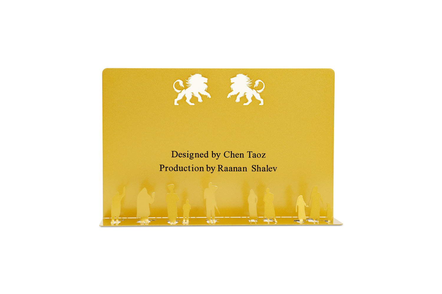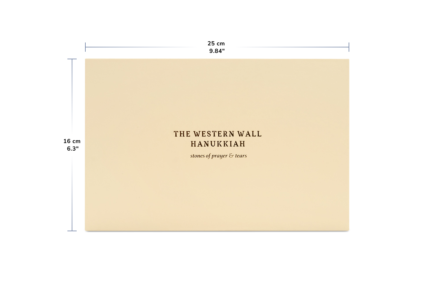 From that spirit comes this extraordinary Hanukkiah, The Western Wall Hanukkiah, designed by Chen Taoz, an artist whose work bridges light and faith. Crafted from textured metal, it captures the sacred stillness of the Kotel: the deep crevices between its stones, the soft silhouettes of men, women, and children who come to whisper prayers into its walls.