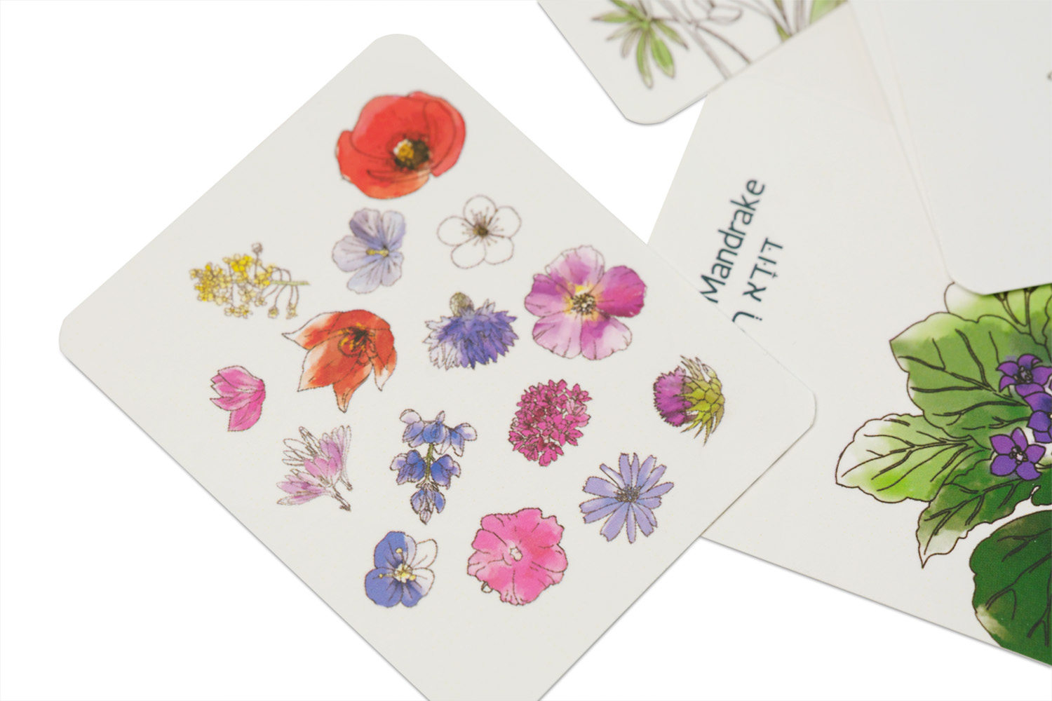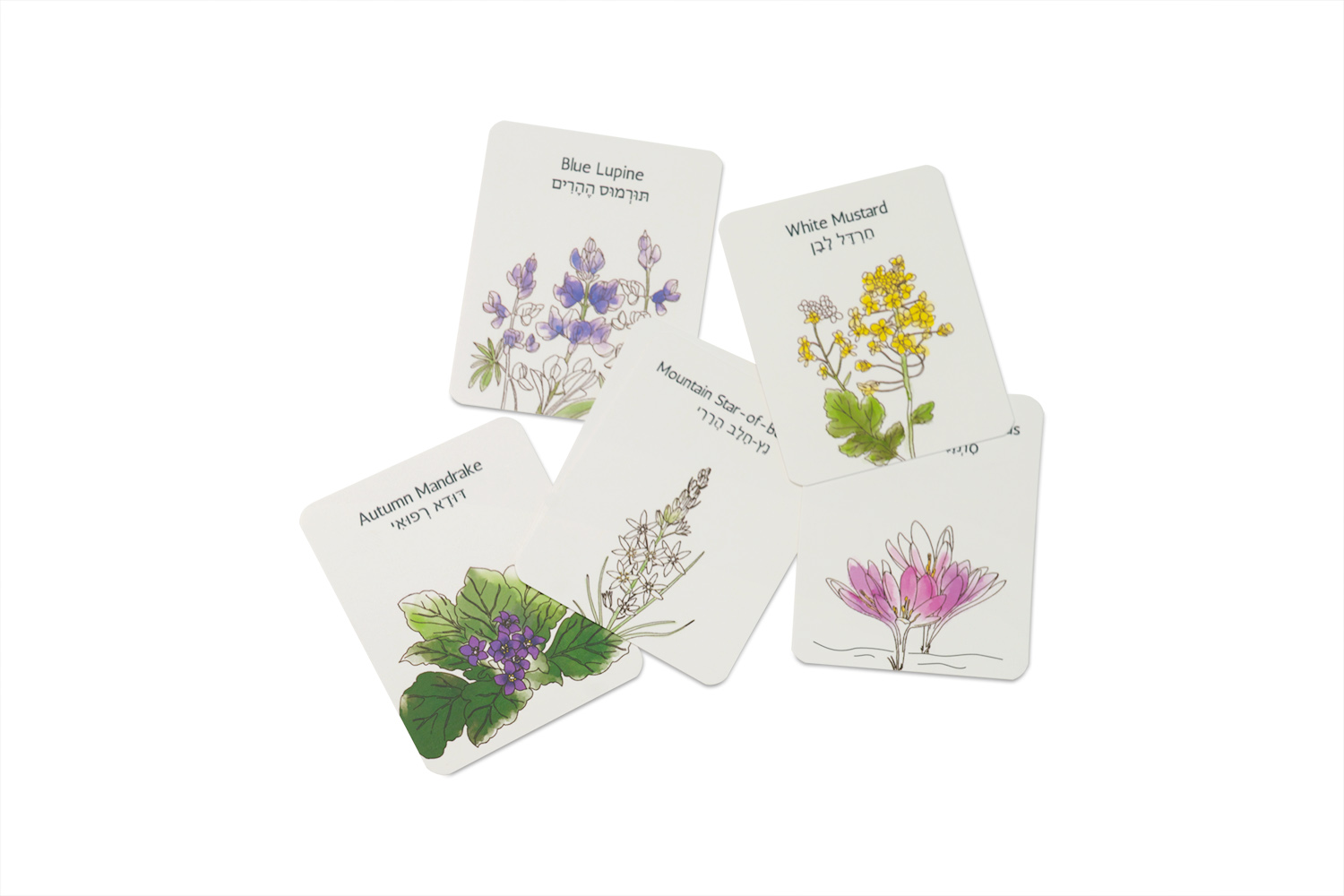 Each card shows a clear botanical illustration paired with the flower’s name in English and Hebrew. The illustrations stay realistic and easy to read, which makes the game suitable for learning and play. Matching pairs helps reinforce plant names that appear regularly in Israeli classrooms and nature programs.