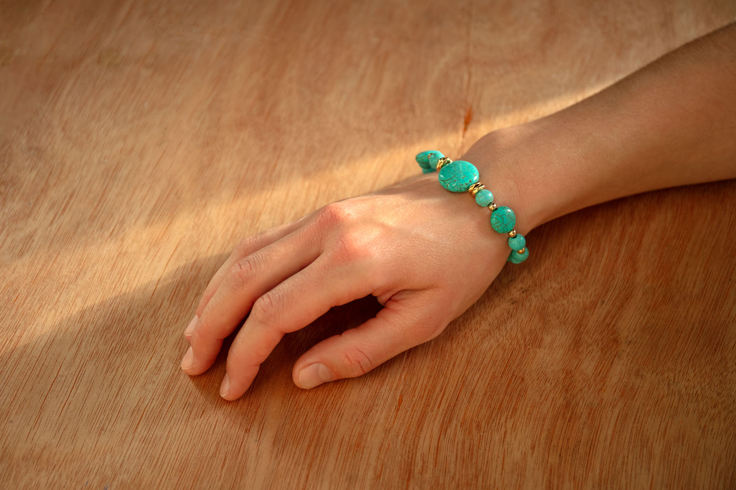 Turquoise and Gold-plated Bead Bracelet