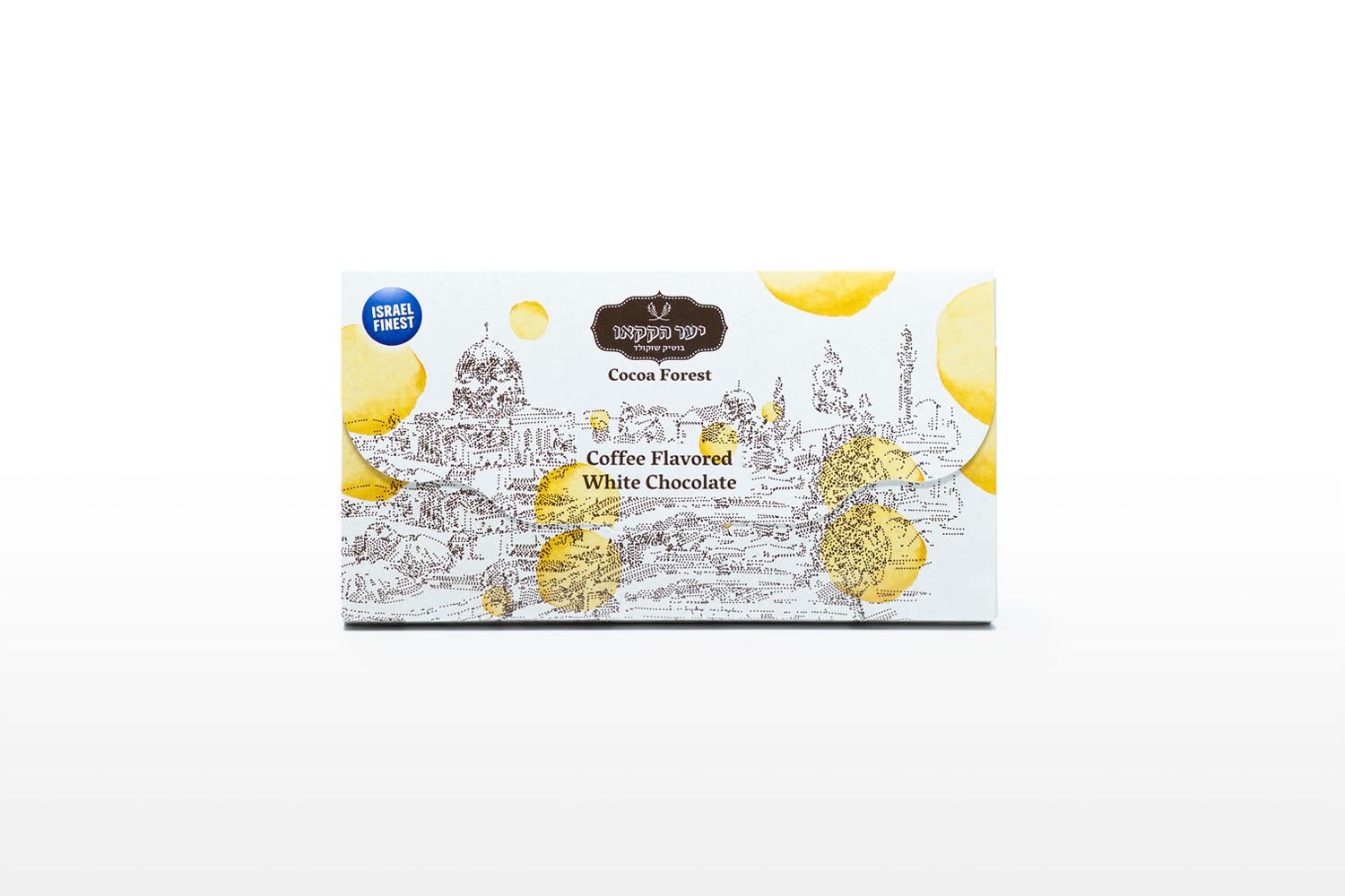 Experience the comforting blend of white chocolate and aromatic coffee with this 100-gram Coffee Flavored White Chocolate Bar from Israel’s beloved Cocoa Forest. This handcrafted delight, made in the heart of Jerusalem, is a true taste of the Holy Land, offering you the warmth of Israeli hospitality in every bite.