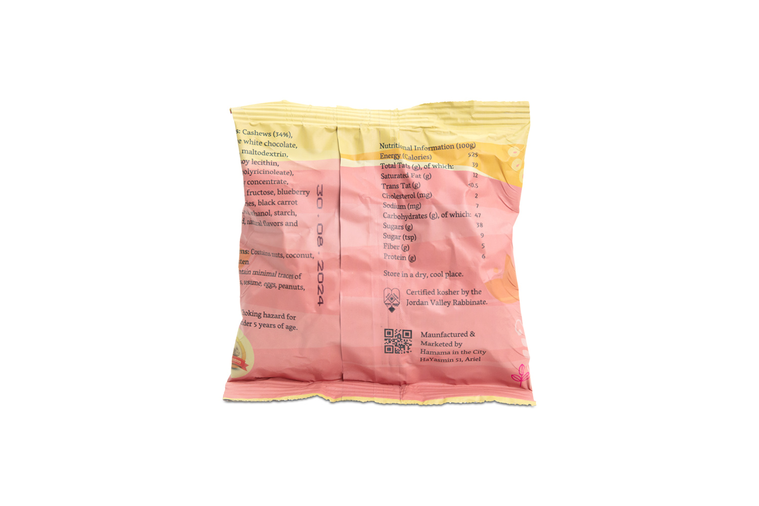 Hamama in the City, a well-loved Israeli nuts and spice company, has created a delightful fusion of creamy cashews embraced by a berry and blueberry finish.