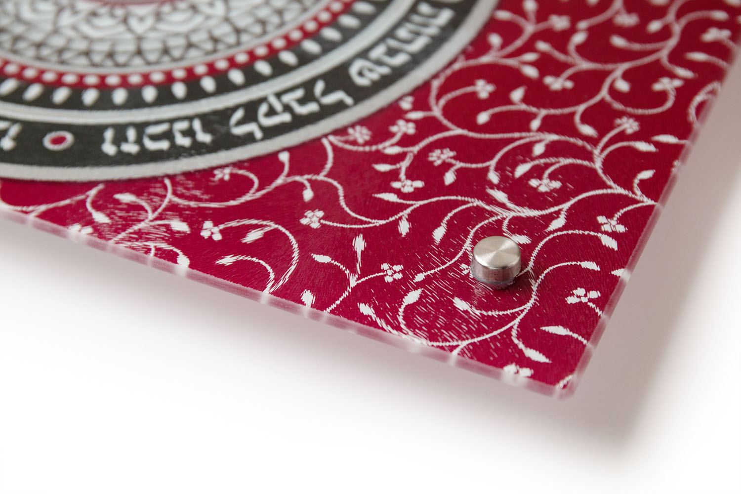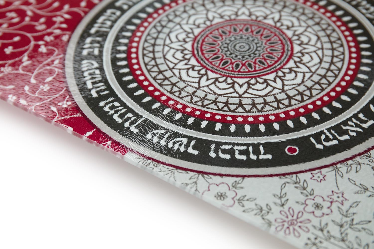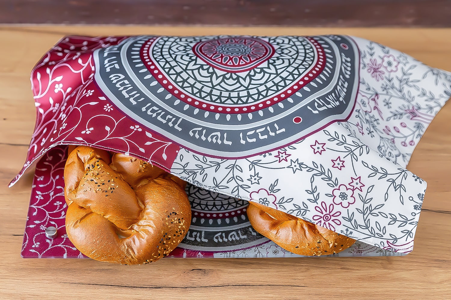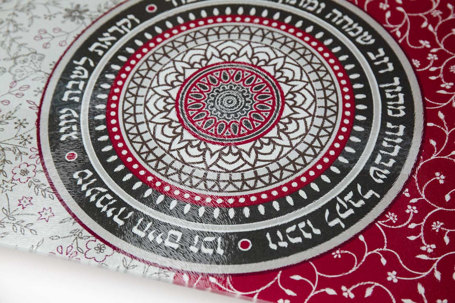 Dorit’s burgundy and gray mandala-style challah board offer a simple design that will add a touch of color and soothing design to your Shabbat and Yom Tov tables.