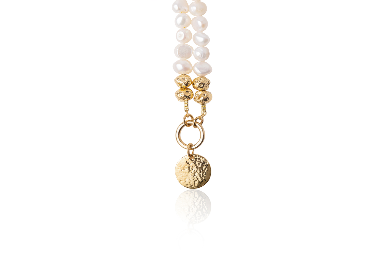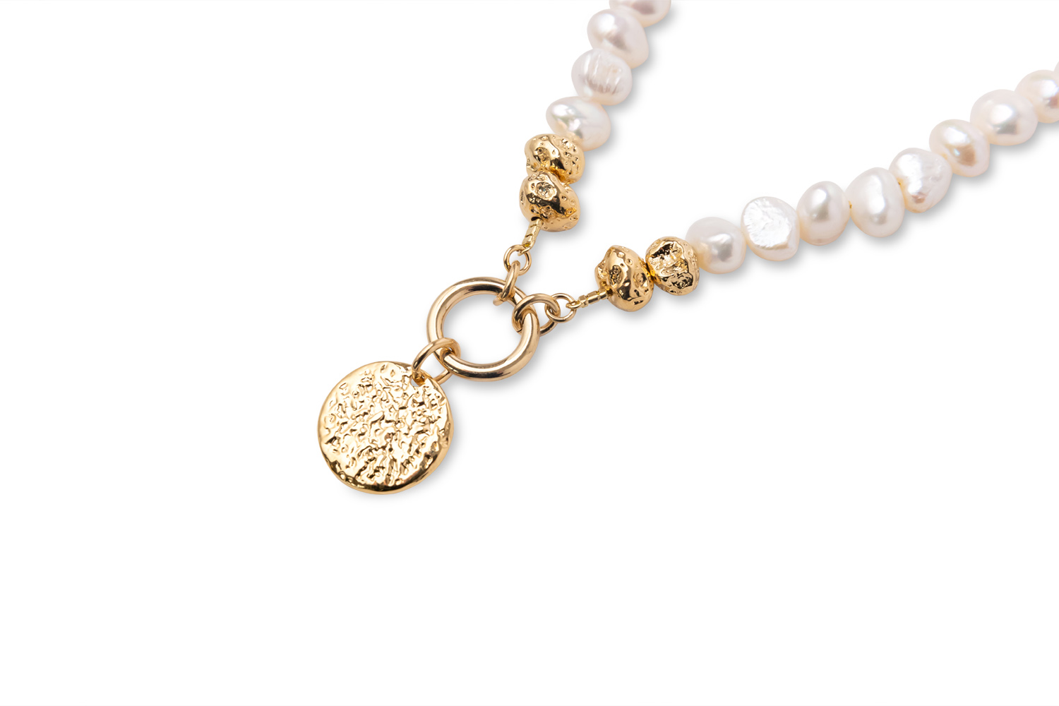 Freshwater Pearl Necklace with Gold-Plated Decorative Disk